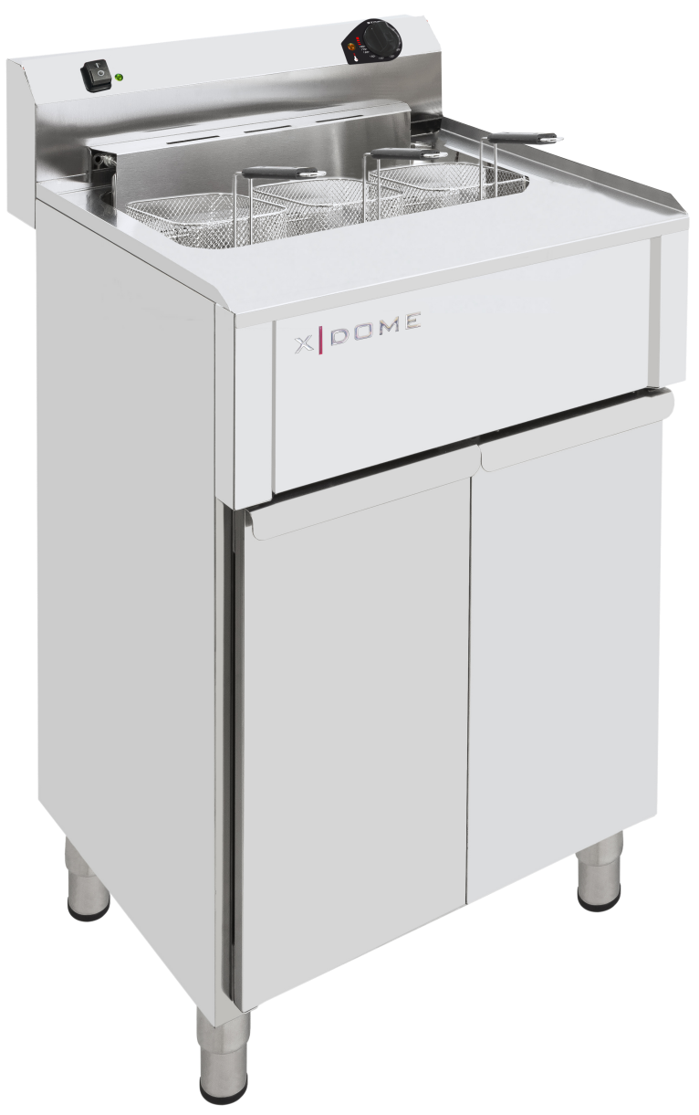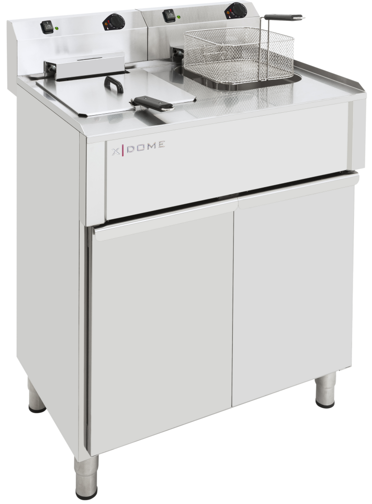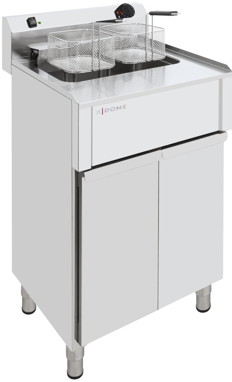 Cuba interior embutida de inox com marca de nível de óleo, máx. e mín.